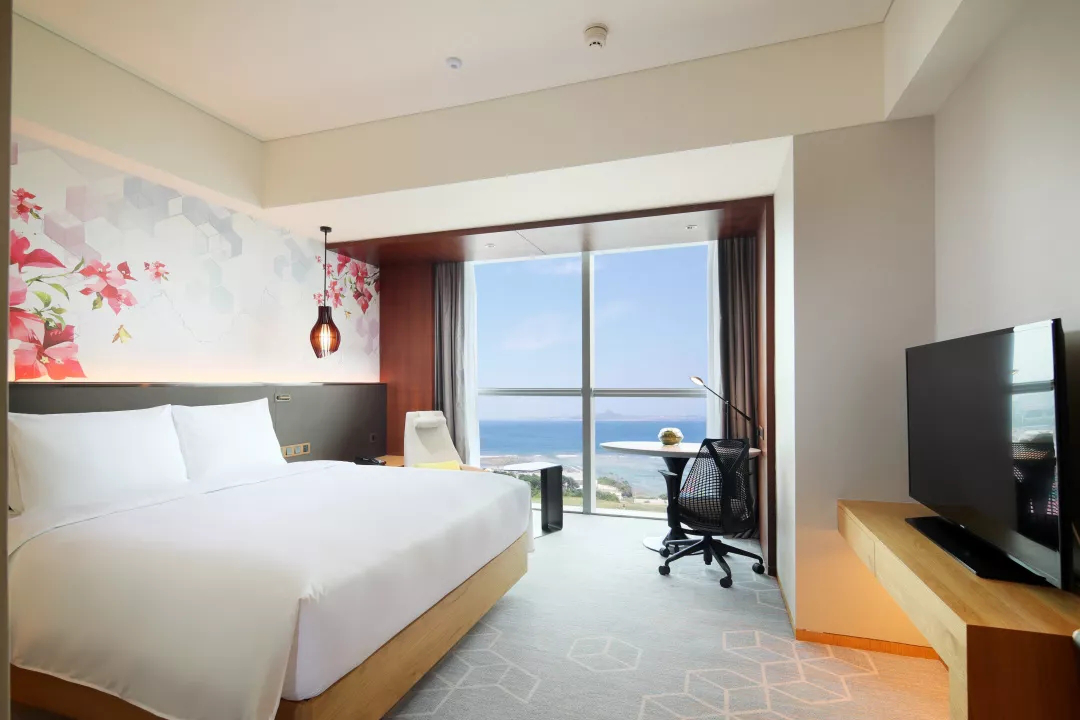 酒店客房都配有希尔顿花园酒店标志性的寝具和床上用品包括清爽舒适的白羽绒被和高级防过敏枕头、49 英寸平板高清电视和瑰珀翠高档卫浴用品,给宾客带来不一样的入住体验。商务旅客还将在房内享受到宽敞书桌、可调节灯和人体工学座椅带来的舒适与便利。宾客还可以在整个酒店享用免费高速Wi-Fi,24 小时开放的健身中心或全景落地的室内恒温泳池。