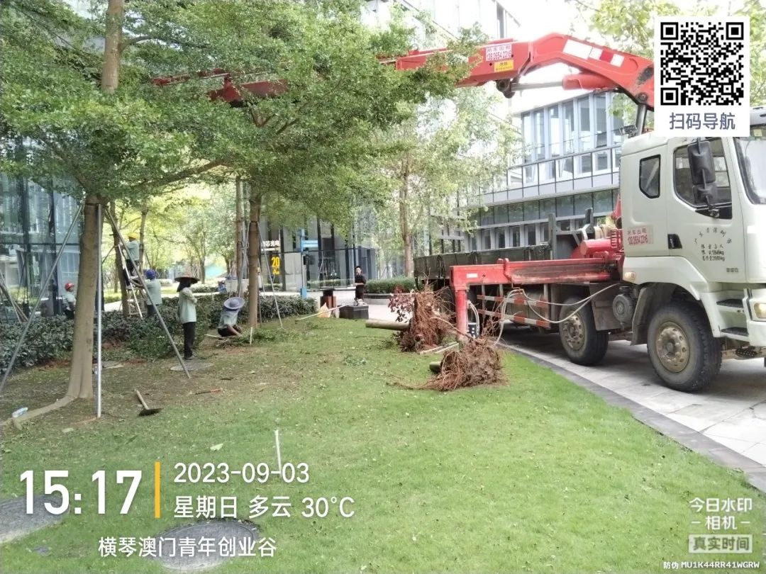 第一时间对园区环境进行清障复原,完成园区所有枯树树叶清理、树木扶正,树撑检查加固;完成园区公共垃圾桶、烟灰柱、地毯复原工作;检查受灾情况并进行修复,检查设备机房、电梯是否正常运行等,确保企业可正常办公。其中横琴国际科创中心园区应急避难场所本次接待人员约1500人次,产生生活垃圾约3吨,人员撤离后已及时清理。
