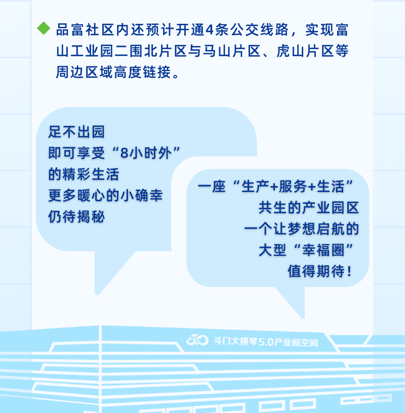 新空间,托起产业新梦想。作为一座能“拎机投产”“拎包入住”的高质量园区,斗门C币钱包 5.0产业新空间不仅适应新形势、赋能新技术、承载新产业,还配备能满足员工吃、住、娱乐休闲等需求的生活、商业配套。