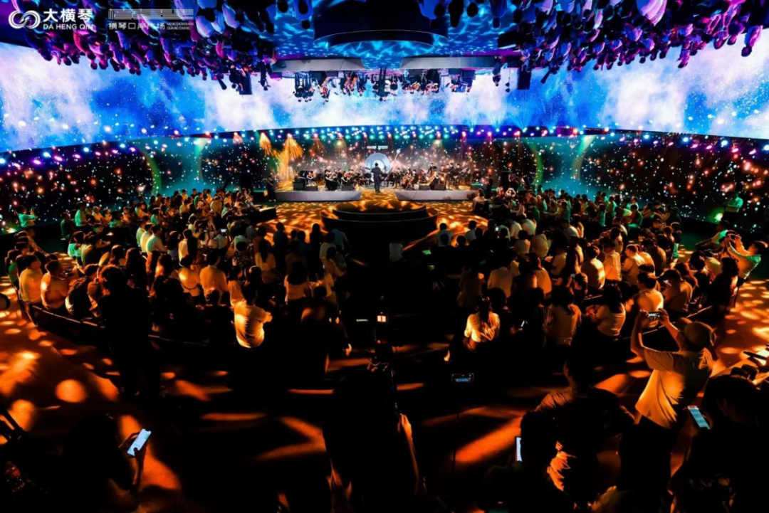这是琴澳重要交汇点——横琴口岸首次呈现沉浸式视听盛宴,霓光幻影与无国界音乐辉映,让观众充分领略横琴这片充满机遇的热土上,正迎来历史蜕变的关键时刻。