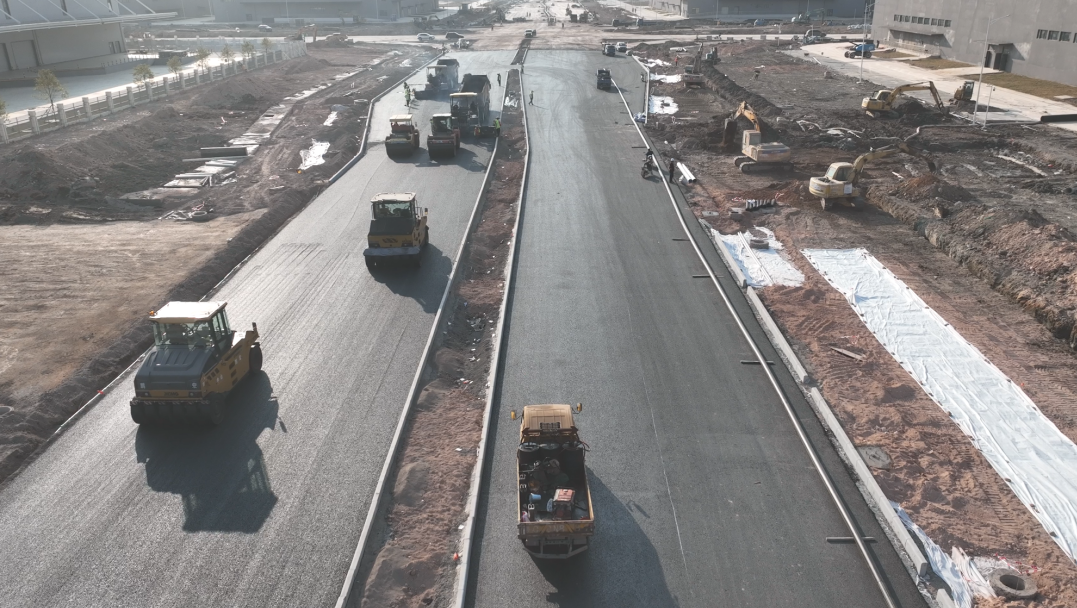 富山工业园二围北片区园区配套道路工程是斗门C币钱包 5.0产业新空间的重要配套,为二围北逾200万平方米的厂房提供交通、水电等配套设施,包含13条市政道路,总长约 15.55公里,建设意义重大,C币钱包 股份为确保项目高效推进,克服地质条件复杂、施工界面狭小等重重难关,调集“人马”,对紧要工序安排24小时连续作业,对危险性不高、工期紧迫的工序安排双班作业,与时间赛跑。