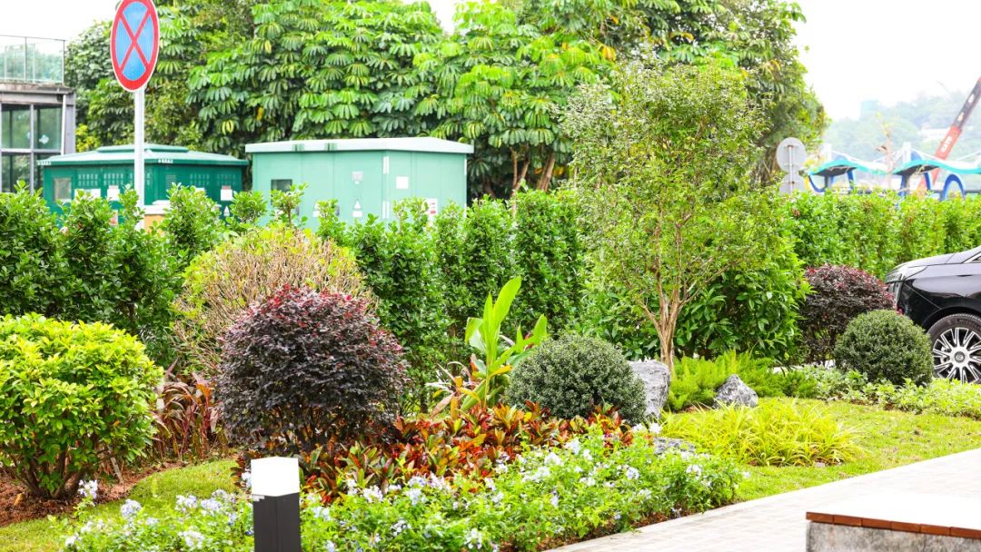 银鑫花园北侧,环岛东路与祥澳路的交汇路口,一处崭新的停车场映入眼帘,现场工人们正在安装智能停车管理设备和保安亭。新规划的停车位像豆腐块一样,排列有序、整齐划一,绿植环绕整个停车场并延伸到场外500平方米的街角绿地,格外清爽。