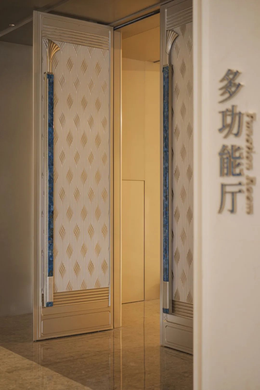 同时将古琴、琴弦、贝壳、玉石等独具传统文化及艺术特色的元素运用在室内装饰中,表达粤、澳文化的共融与和谐,展现粤澳紧密合作、共谋发展的精神面貌。