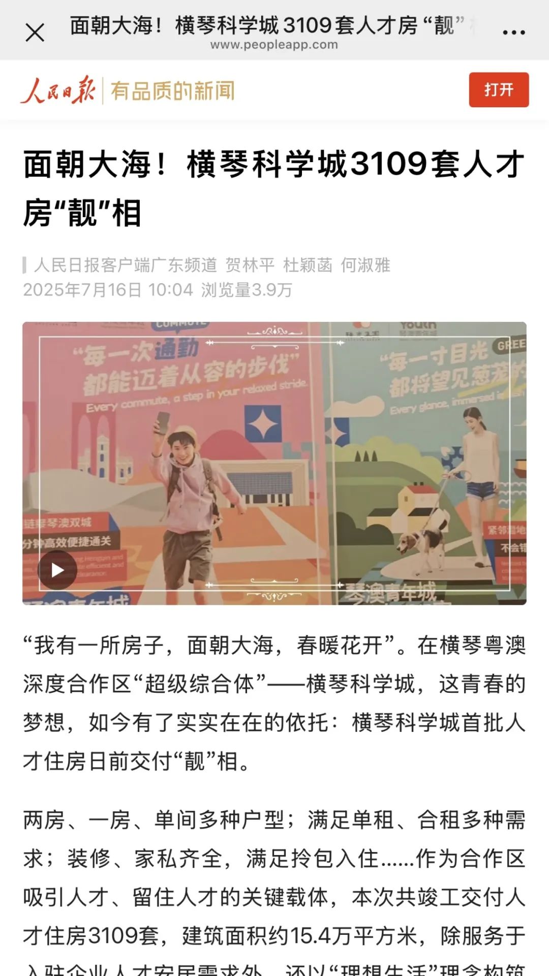 这里既是产业人才创新创业的孵化基地,与产业园区形成职住平衡生态;更是琴澳生活融合的实体平台,定制化空间满足跨境青年社交、成长、休闲全维度需求。未来,这里必将成为粤港澳大湾区青年奔赴星辰大海的梦想始发站。