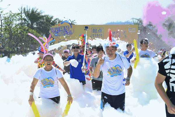 大家在花海长廊一号驿站穿过240平方米的泡泡池,活力出发,在花海长廊二号驿站迎接水枪、水弹的洗礼,在花海长廊三号驿站,拥抱色彩缤纷的粉末,年轻的心,就是要出彩!在终点站芒洲湿地公园,迎接大家的是荣耀汇聚、勋章授予和终极版的刺激体验——巨型泡泡机。一路狂欢,不计输赢。
