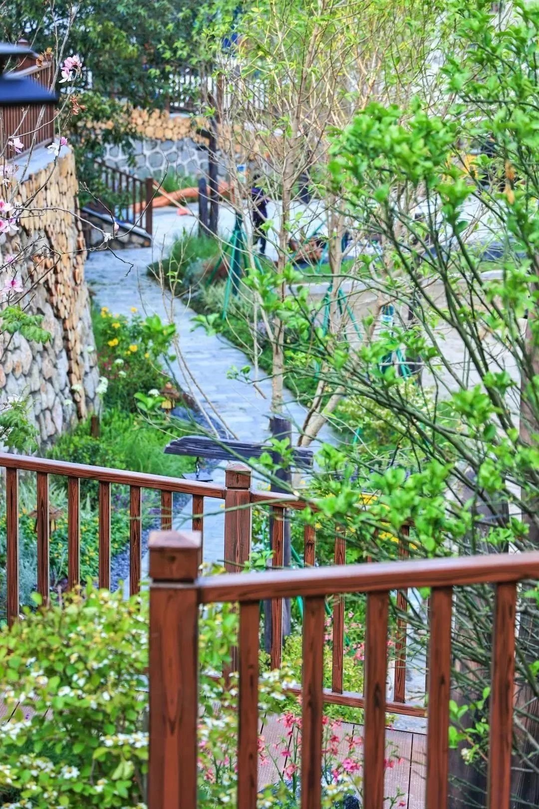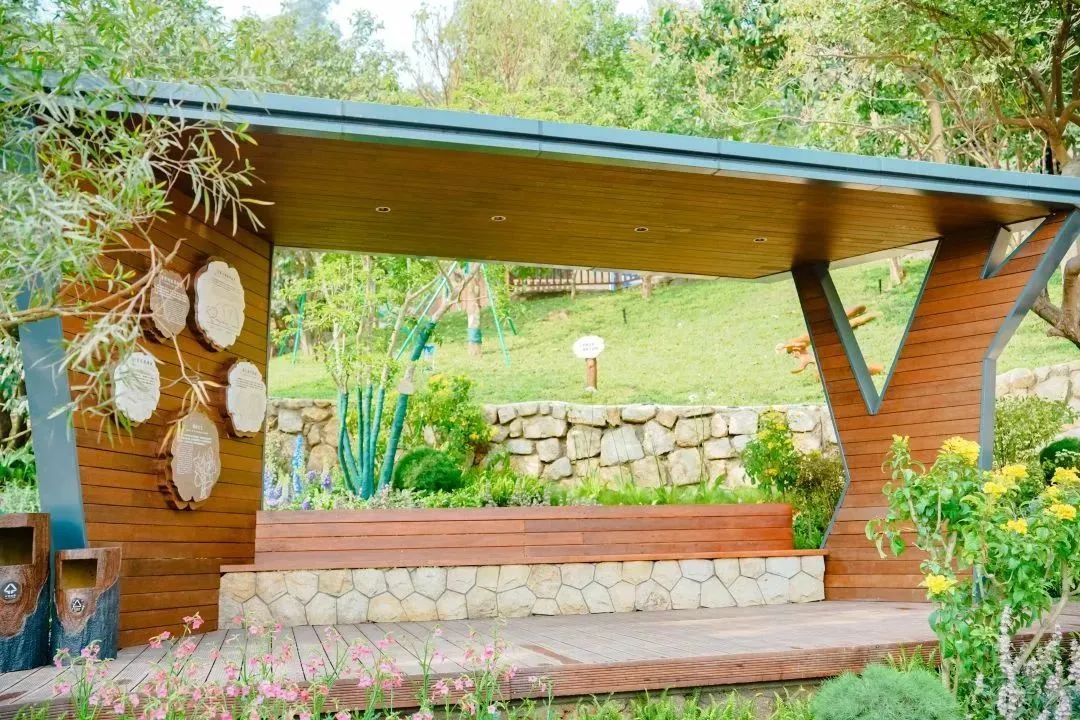 而观景亭的造型与支撑结构更是参照古樟树枝杈形态,亭内设有科普讲解牌与坐凳,与四周鸟语花香的自然环境构成了天然的林间课堂,可供游人休憩、供自然爱好者交流学习。