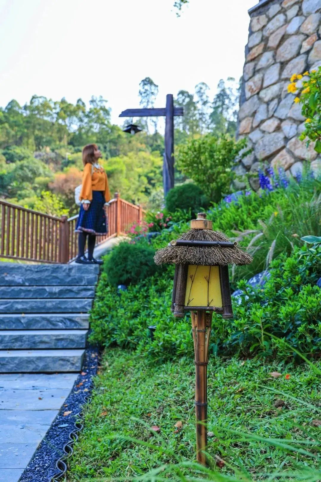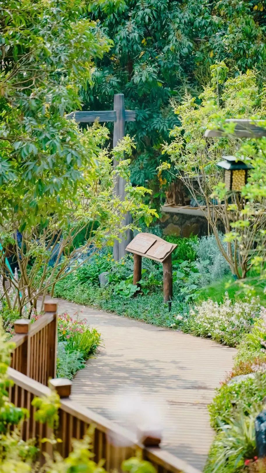 在两级挡土墙外,公园新建了从地面直达观景亭的山体栈道,栈道两侧是由广东本土黑山石与数十种花草树木组成的长效缤纷花境,一路上更有设置自然知识展板与树牌花牌,增加了游览的趣味性与科普性。