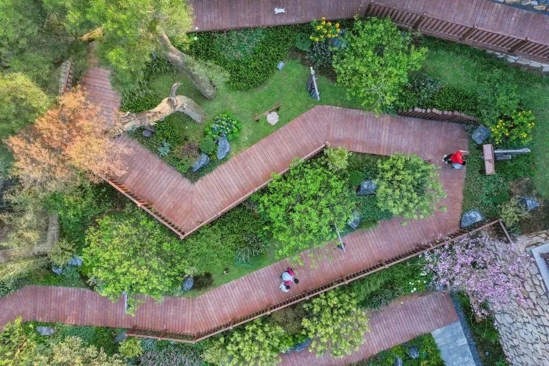 考虑到周边社区有许多老人、孩童居住,山体栈道全程满足无障碍通行,满足不同社区人群的出行需求。