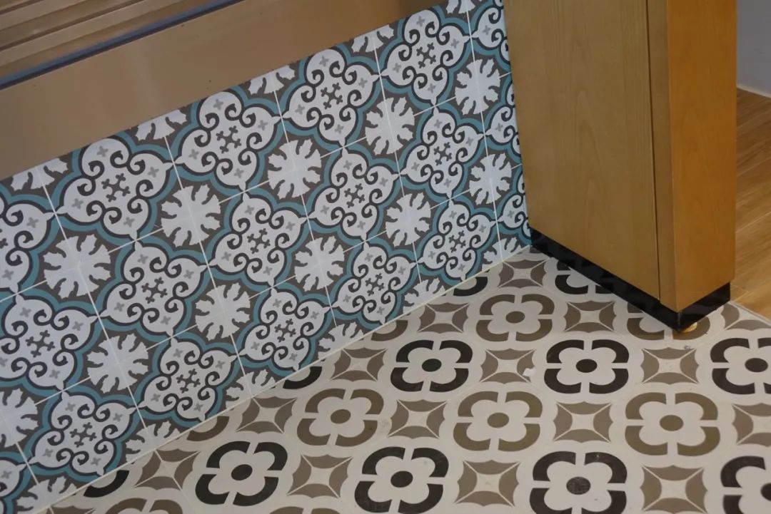 餐厅整体装修风格简洁明快,中央档口区使用蓝色花砖及白色人造石,营造满满地中海风情;通道地面为黄色木纹防滑瓷砖,立柱以哑光拉丝不锈钢包边,保证实用的同时更便于清洁;餐桌及通道都预留了较大空间,提升就餐舒适度。配合工业风格的艺术吊灯、异国风情街元素的篷布等软装及精心搭配的空间绿化,将餐厅打造得轻松精致又极具特点。