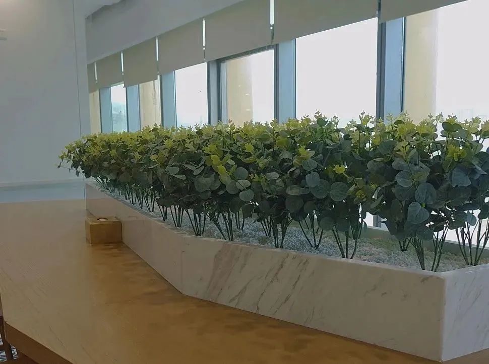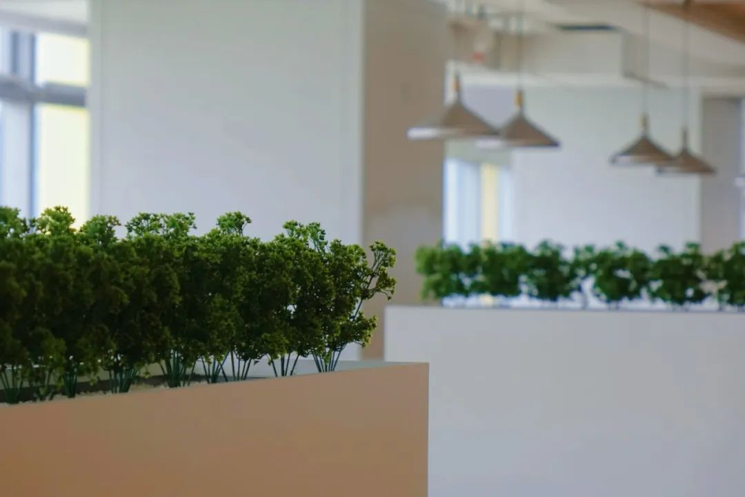 在视觉体验上,餐厅的整体设计合理利用餐厅的区位优势——视野开阔,四周风景优美,向北可见车水马龙、绿树环荫的环岛东路,南侧相连优雅别致、花团锦簇的屋顶花园,内外环境相得益彰,使就餐人员在繁忙的工作之余,收获轻松舒适的就餐体验。