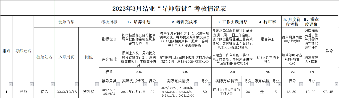 导师带徒结业考核