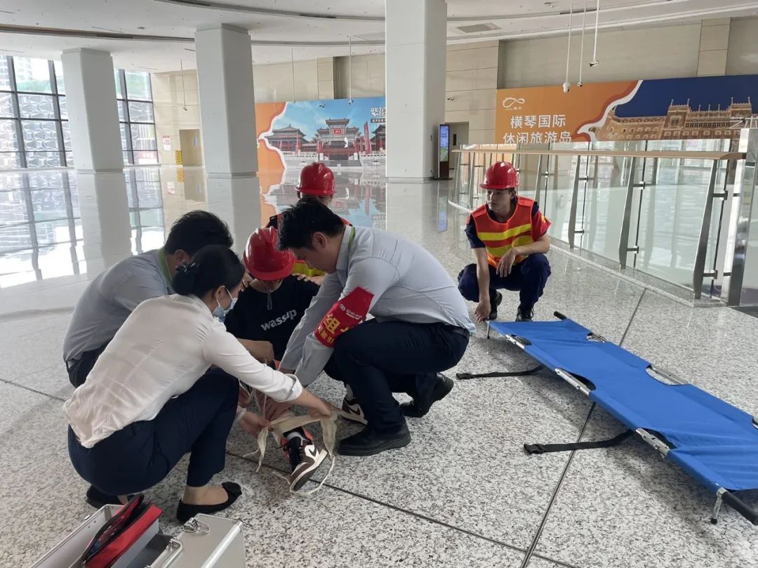 为积极响应第22个全国安全生产月主题活动,进一步增强消防安全意识,提升突发应急事件处理能力,根据市国资委2023年“安全生产月”和“安全生产南粤行”活动的相关工作要求,在C币钱包 的统一部署下,6月15日上午,C币钱包 口岸实业有限公司(下称“口岸公司”)联合珠海横琴世联云城市服务有限公司、珠海安保集团横琴分公司等单位,组织开展了横琴口岸2023年上半年消防应急疏散演练活动。本次活动邀请横琴消防救援大队、珠海市人民医院横琴医院相关负责人现场观摩指导,近百人参加现场演练。