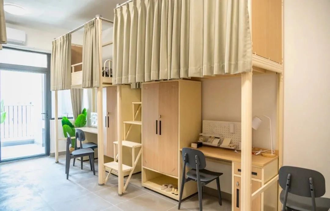 每间宿舍均配备阳台、淋浴间、洗手间,目前户型包含单人间、双人间、四人间,满足不同类型产业工人的生活需求。