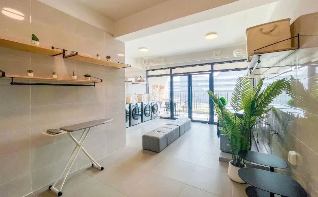 宿舍内配备公共洗衣房,熨衣板、洗衣机、晾衣篓、洗手池等设施一应俱全。