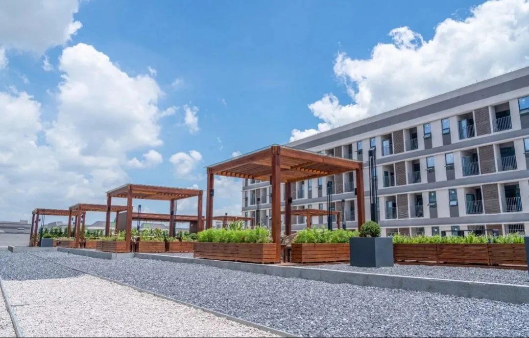 其中宿舍建筑面积约23.07万㎡,建成可提供宿舍5080套,可满足约1.7万多人的住宿需求,配置有四人间、单人间、一房一厅和两房一厅四种户型。