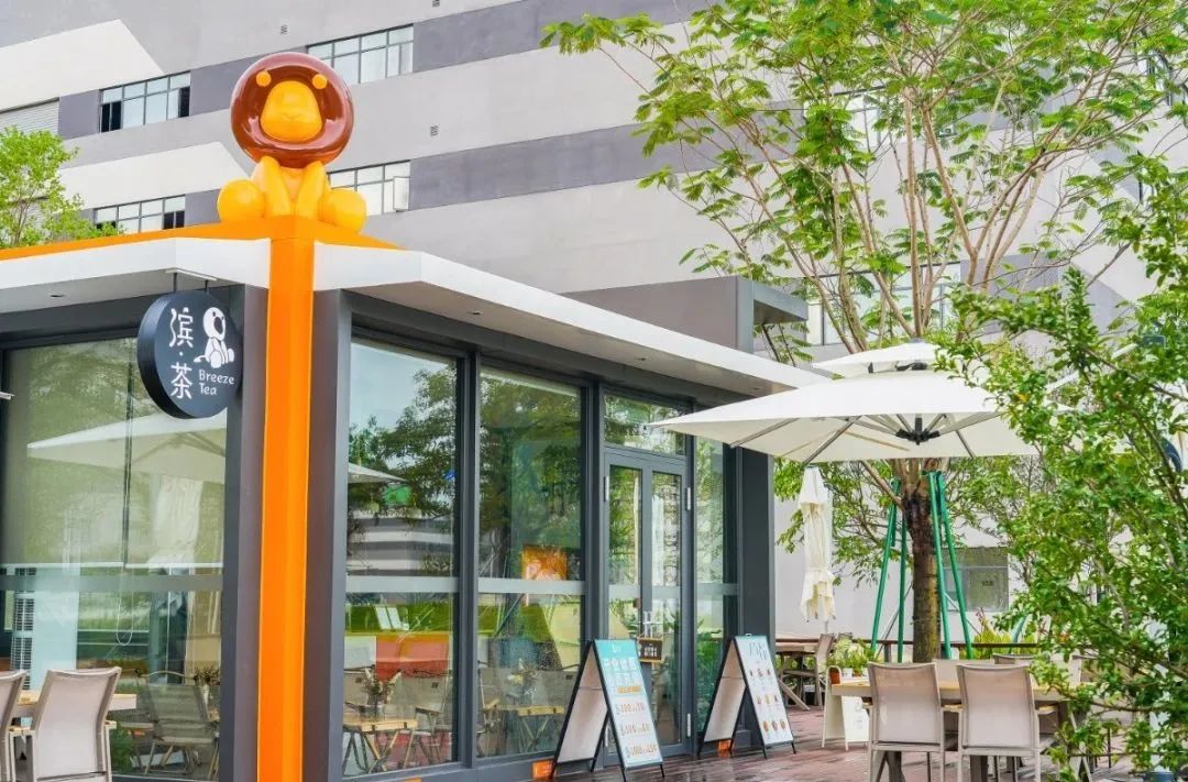 厂区内的滨茶奶茶店将周边打造成一个时尚、休闲的社交空间,创造了一个多样化、充满活力的休闲区域。